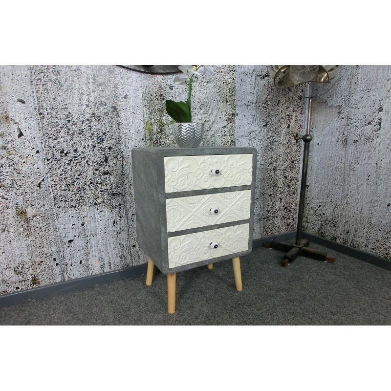 Dovezeno z Německa, vyrobeno pro západní trh, rozměry: Š40xH30xV69 cm, materiál kombinace dřeva z pínie s kovem s povrchovou úpravou starobylého rázu, stylové keramické úchytky, kvalitní použitý materiál a zpracování, nadčasová a elegantní komoda, snadná údržba, 3x zásuvka, dodáváno již smontované od výrobce Bader Germany.