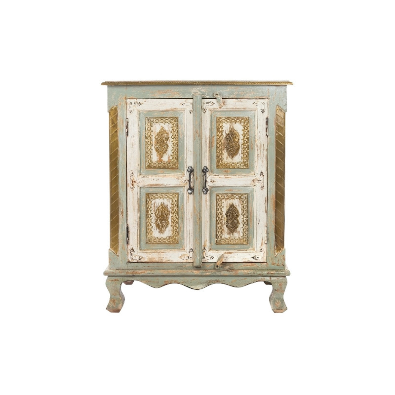 Antická dřevěná komoda s rozmazanými barevnými prvky