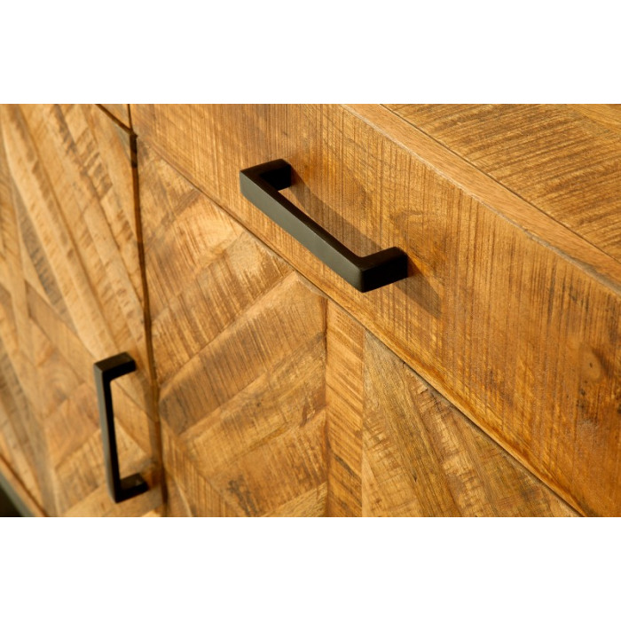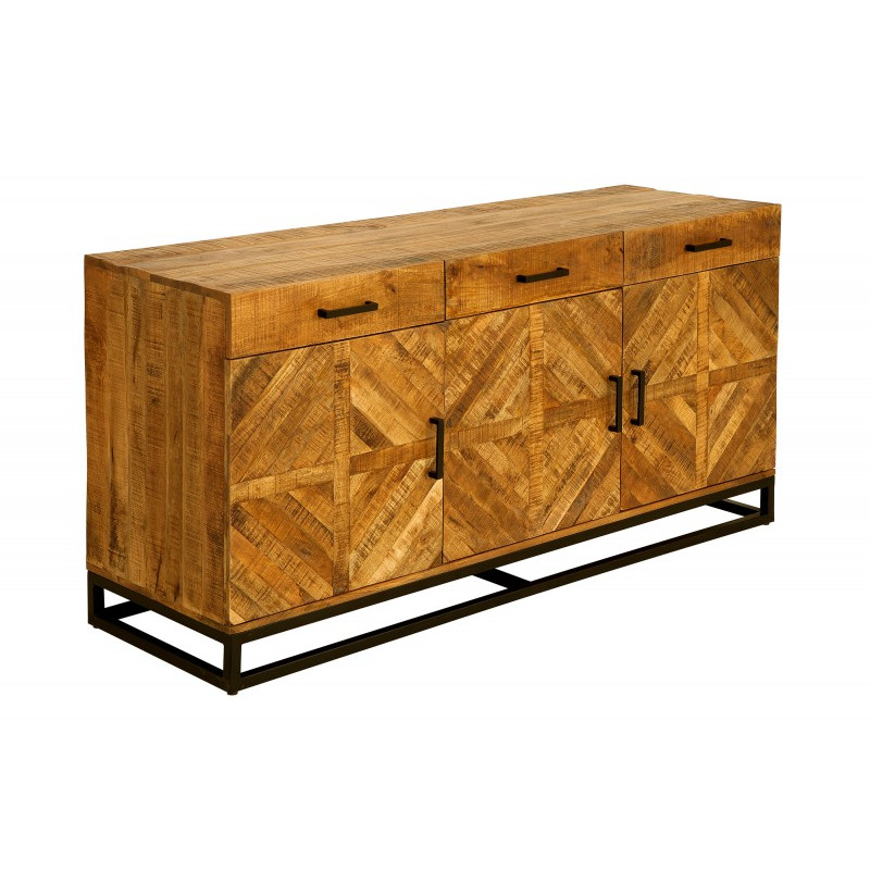 Dovezeno z Německa, rozměry: Š160xH45xV85cm, zásuvky 3x Š47xH37xV8cm, úložné prostory Š51xH46xV54, materiál FSC certifikované velice odolné mangové dřevo ručně zpracované, proto mohou existovat barevné odchylky, nerovnosti nebo mírné rozměrové odchylky, ošetřené lakovanou povrchovou úpravou v přírodní barvě dřeva, průmyslový vzhled, stabilní kovová základna, krásný doplněk evokující moderní styl dnešního bydlení, důraz byl kladen na zachování přírodního vzhledu díky jedinečnému ručnímu zpracování a nádherné malbě dřeva s vynikající povrchovou úpravou materiálu, snadná údržba, kovové kliky, 3x dvířka s měkkým a tichým zavíracím mechanismem, 3x police, 3x zásuvka, hmotnost cca 60kg, dodáváno smontované, výrobce Invicta Interior.