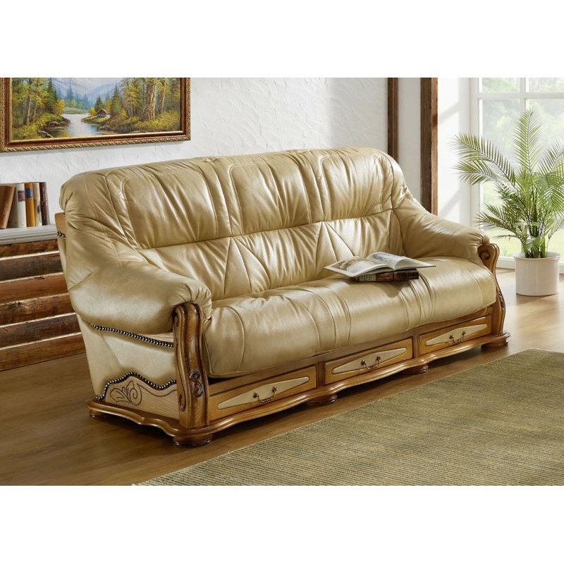 Součástí designu jsou také atraktivní prvky, jako je zdobení na přechodu mezi potahem a rámem, a propracované dekorativní frézování v částech rámu. Dalším chytrým prvkem jsou praktické zásuvky s kovovými úchyty, které jsou umístěny pod sedáky. Tyto úložné prostory vám umožní snadno uskladnit drobnosti a udržet tak váš obývací pokoj v pořádku.