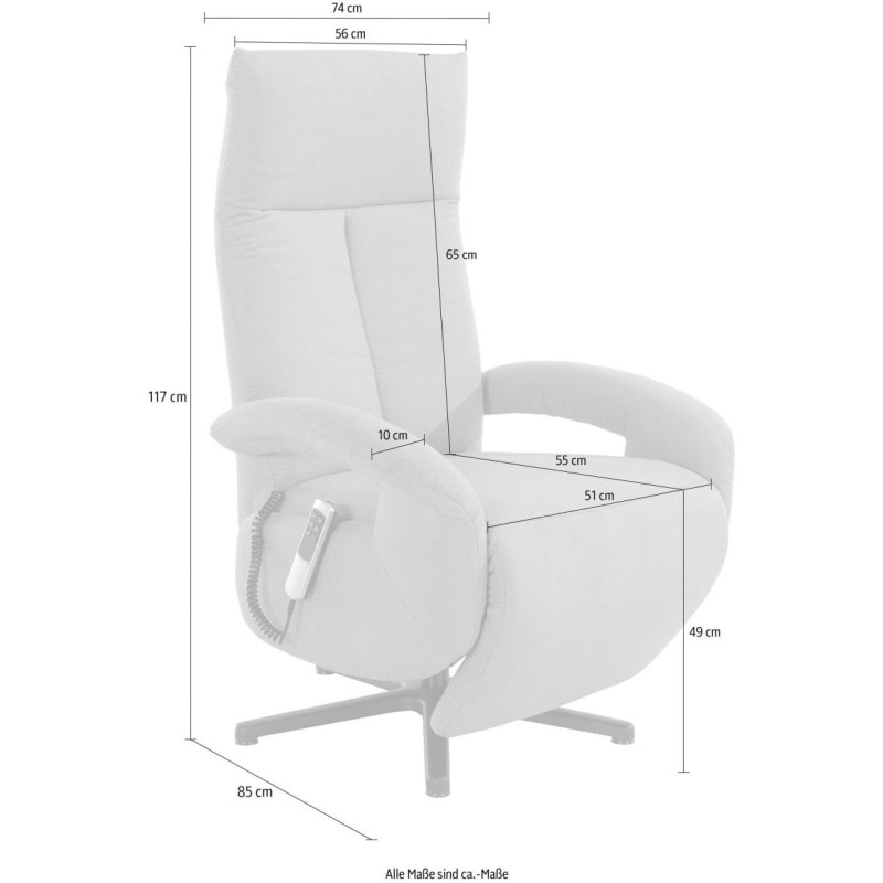 Křeslo disponuje polstrovanými opěrkami a sedací částí, které zajišťují vysoký komfort. Díky stufenlos nastavitelnému mechanismu si můžete nastavit pozici, která vám nejvíce vyhovuje. Konstrukce s vlnovou podložkou a polyuretanovým polstrováním poskytuje optimální oporu pro vaše tělo, čímž přispívá k příjemnému odpočinku. Křeslo má záložní akumulátor.