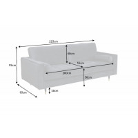 Dovezeno z Německa, vyrobeno pro západní trh, rozměry: Š225xH95xV90cm, výška sedu 50cm, hloubka sedu 55cm, šířka sedu 200cm, výška opěry zad 40cm, materiál čalounění jemná sametová látka 100% polyester v šedé barvě, celočalouněno - vhodné i do prostoru, robustní rám z certifikovaného FSC bukového dřeva a dřevotřísky, elegantní kuželovité černo-zlaté nohy, kvalitní pěnové polyether polstrování, Nosag ocelové pružinové jádro + sedák pohodlný prodyšný pur, hustota pěnové vycpávky 45kg/m3, středně tvrdý sed, vysoké područky dodávají útulnou atmosféru při relaxaci, exkluzivní rezidenční koncept, charismatická luxusní pohovka v klasickém, ale zároveň moderním nadčasovém stylu, snadná údržba s návodem, výrobce Invicta Interior.
