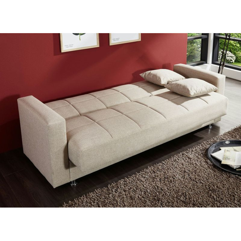 Pohovka Cambio se pyšní atraktivním vzhledem, který doplní jakýkoli prostor. Její klapkový mechanismus umožňuje snadné rozložení na příjemnou postel pro hosty, což oceníte při nečekaných návštěvách. Díky velkorysému úložnému prostoru pod sedákem budete mít vždy dostatek místa pro uschování polštářů či přikrývek.