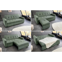 Díky svému modernímu designu a univerzální zelené barvě se pohovka snadno integruje do jakéhokoli stylu interiéru. Ať už preferujete minimalistický, skandinávský nebo klasický styl, tato pohovka se stane skvělým doplňkem vašeho domova. Je ideální volbou pro ty, kteří hledají kombinaci funkčnosti a estetiky.