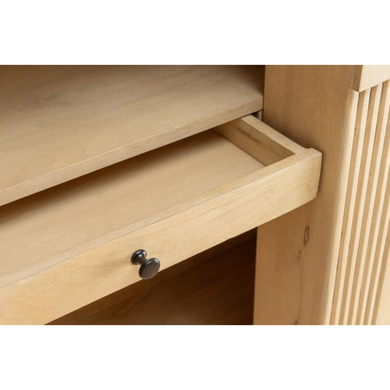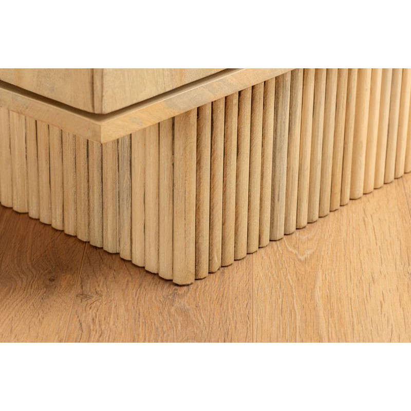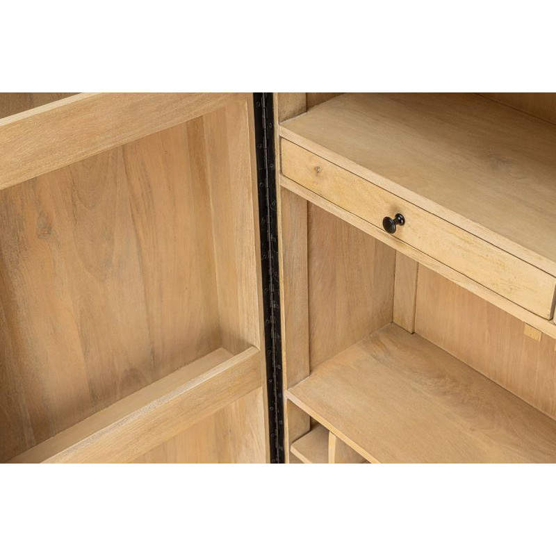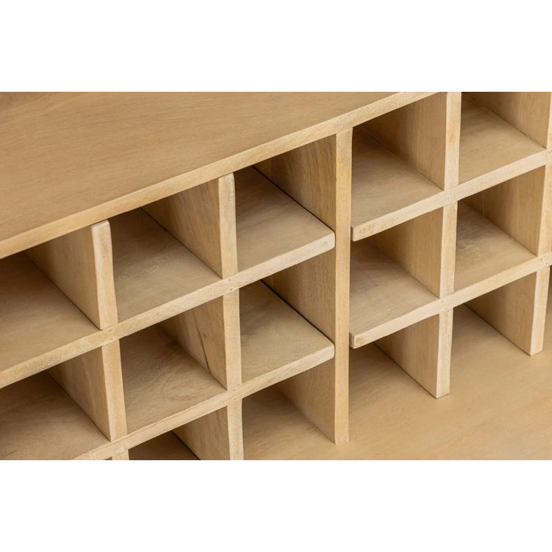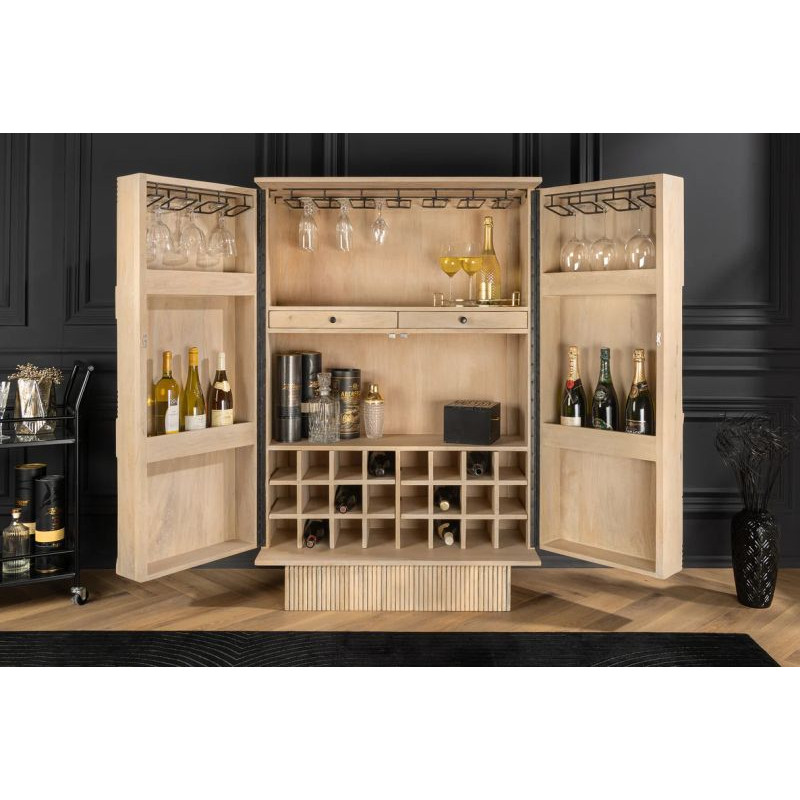 Barová skříňka ART DECO je vyrobena z mangového dřeva, které je známé svou odolností a krásnou texturou. Bílený povrch dodává skříňce moderní vzhled a zároveň umožňuje snadné začlenění do různých stylů interiéru. Zadní deska je z kvalitní dřevěné dýhy, což zajišťuje stabilitu a dlouhou životnost produktu.