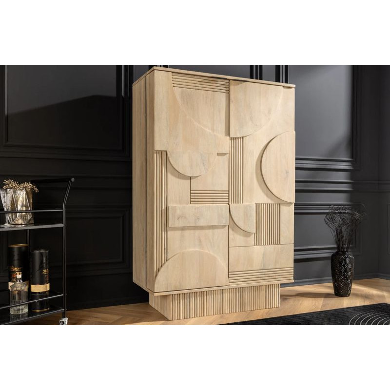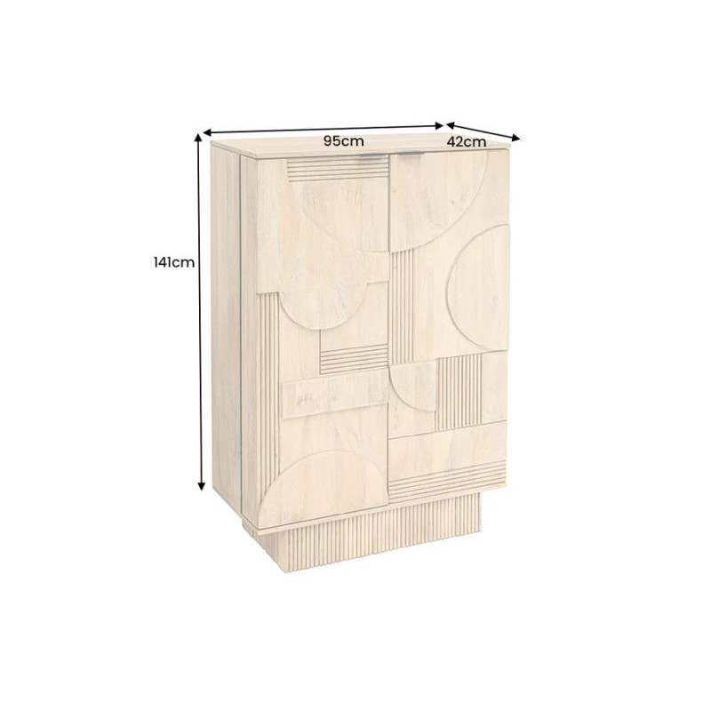 Objevte krásu a funkčnost s barovou skříňkou ART DECO, která nejenže slouží k ukládání Vašich oblíbených nápojů a sklenic, ale také se stane stylovým centrem Vašeho domova. Vyrobená z kvalitního mangového dřeva a dokončena v přírodní bílé barvě, tato skříňka přináší do vašeho interiéru nádech elegance a nadčasového designu.