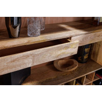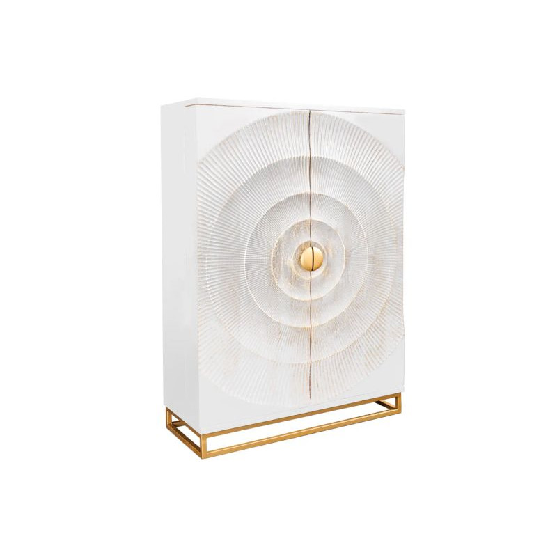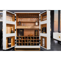 Barová skříňka GOLDEN SUNSET se může pyšnit dokonale zpracovaným mangovým dřevem, které je opatřeno kvalitním lakem pro zvýšení odolnosti a lesku. Zlato zvolených komponentů, jako jsou úchyty a police, vytváří nádherný kontrast s bílou barvou skříňky. Tato kombinace dává skříňce moderní vzhled, který se hodí do jakéhokoliv interiéru, ať už se jedná o elegantní obývací pokoj, nebo útulnou kuchyni.
