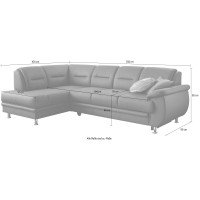 Souprava je vybavena otomanem umístěným na levé straně, což zajišťuje dostatek prostoru pro odpočinek a relaxaci.