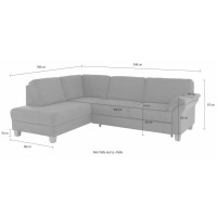 Borkum sedací souprava je navržena s důrazem na pohodlí a funkčnost. Je vybavena pevnými sedacími a opěrnými polštáři, které zajišťují komfort během každodenního používání. S otomanem umístěným na levé straně a prostornými sedacími plochami je ideální pro relaxaci a setkání s rodinou či přáteli.