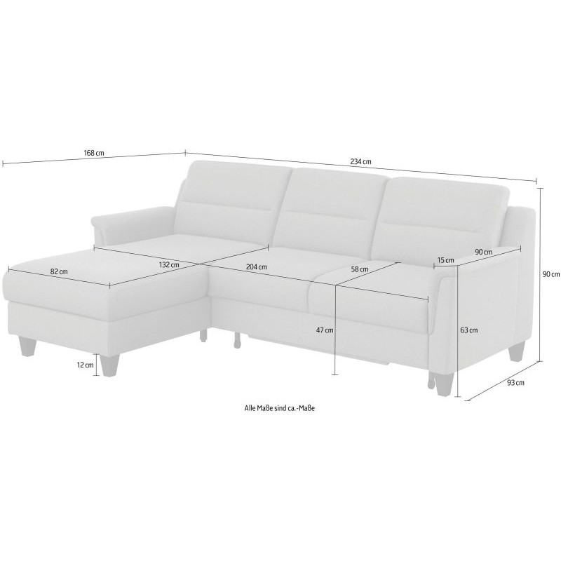- Hloubka recamiere: 168 cm