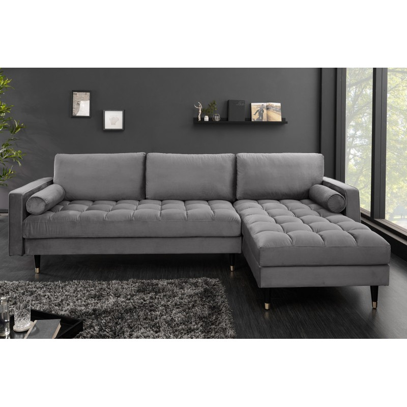 COZY VELVET moderní pohovka šedý samet 260 cm