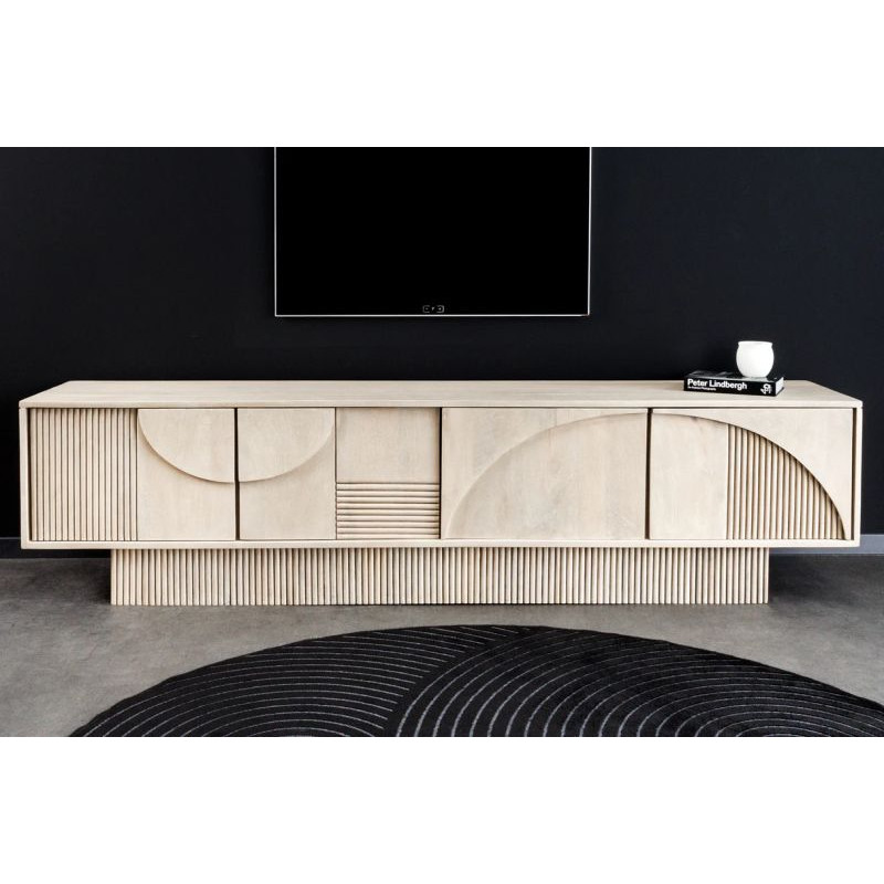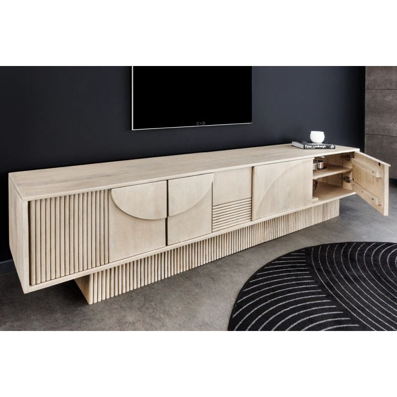 ART DECO TV stolek 200cm 3D mangové dřevo bílé