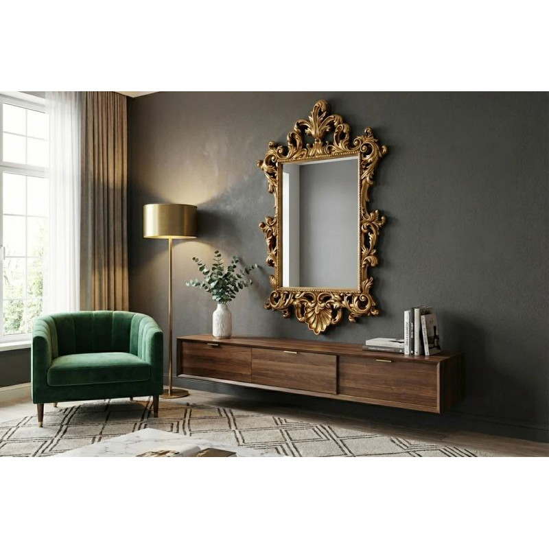 Objevte kouzlo elegance s naším OPULENT. Toto nádherné zrcadlo spojuje moderní design s nádechem luxusu, což z něj činí dokonalý doplněk do každého interiéru. Zlatý rám s jemnými detaily dodává prostoru sofistikovanost a šarm. Ideální pro obývací pokoje, ložnice nebo vstupní haly, kde se stane poutačem pozornosti. Vytvořte si doma atmosféru bohatství a stylu s tímto výjimečným kouskem. Nechte se okouzlit jeho odrazem!