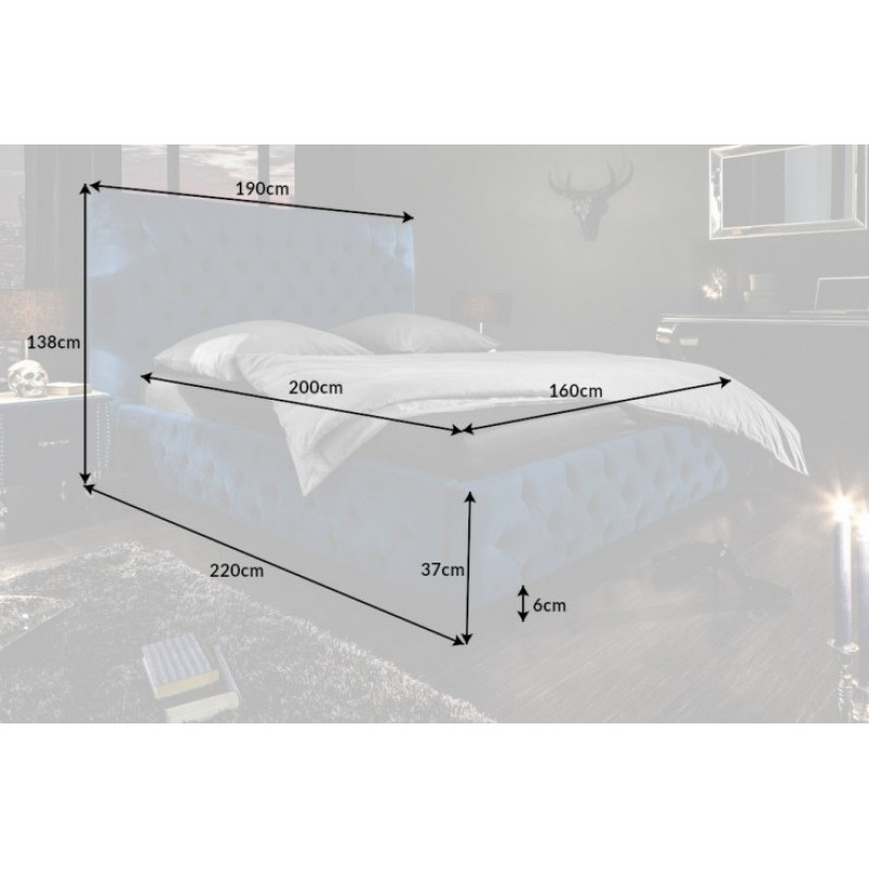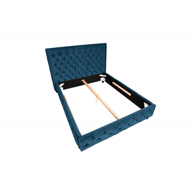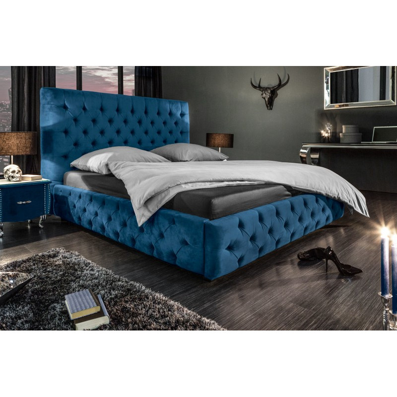 Importiert aus Deutschland, Maße: B190xT220xH138cm, Kopfteilhöhe 138cm, Liegefläche der Matratze 160x200cm, Material sehr strapazierfähige Spanplatte und MDF, Polsterung angenehmer Stoff in Samtoptik 100% Polyester in moderner blauer Farbe, Lieferung zerlegt ohne die Matratze und die Matratze, Hersteller Invicta Interior.