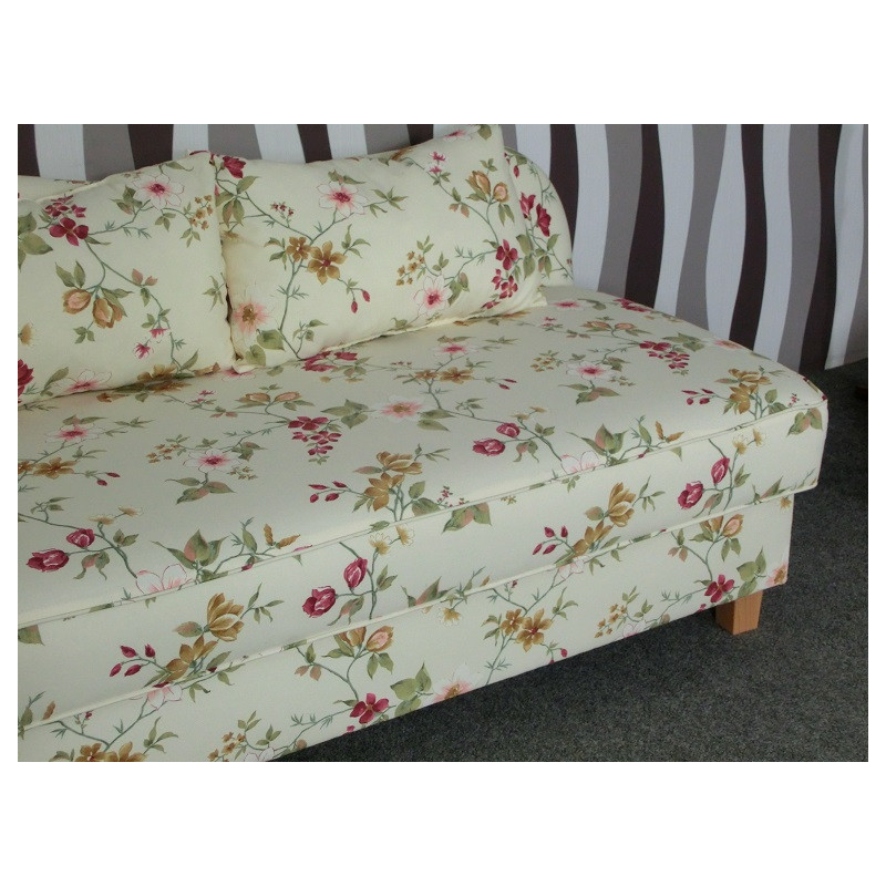 BlumenmusterBezugsmaterial: hochwertiger weicher strapazierfähiger Stoff 50% Baumwolle und 50% Polyester mit BlumenmusterKonstruktionsmaterial: MassivholzBeinmaterial: BuchenholzHersteller: Max Winzer