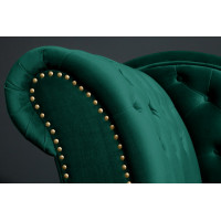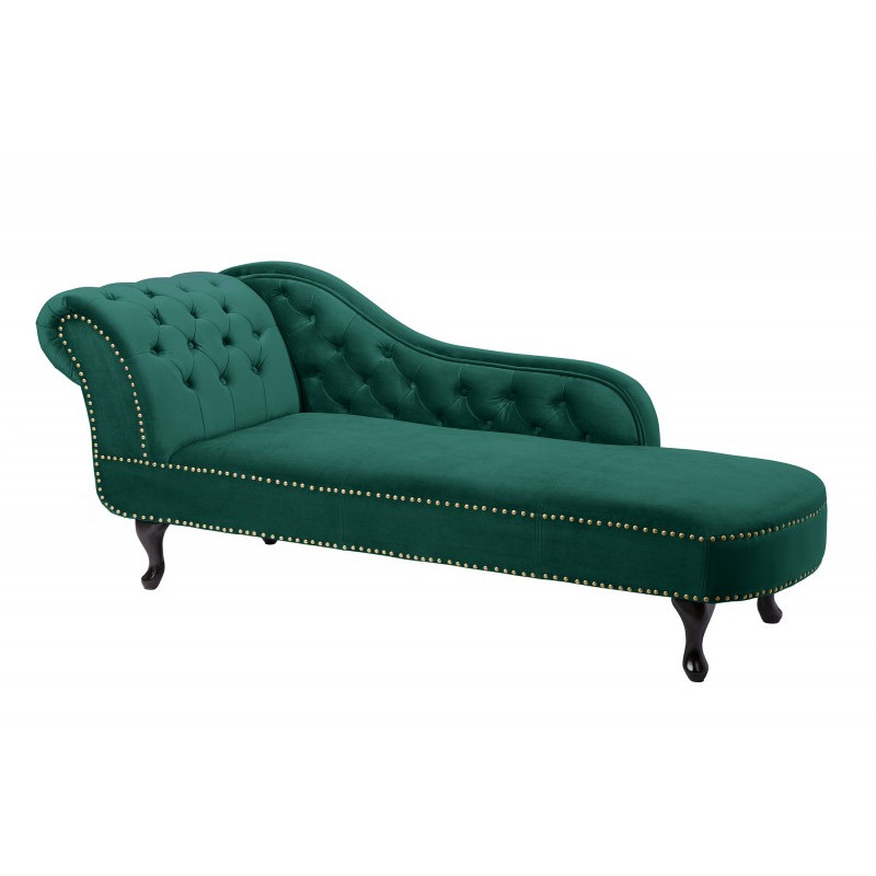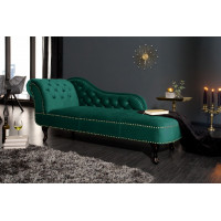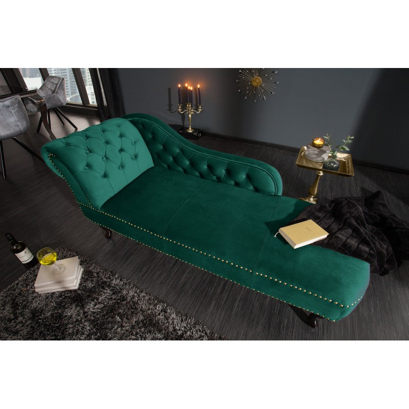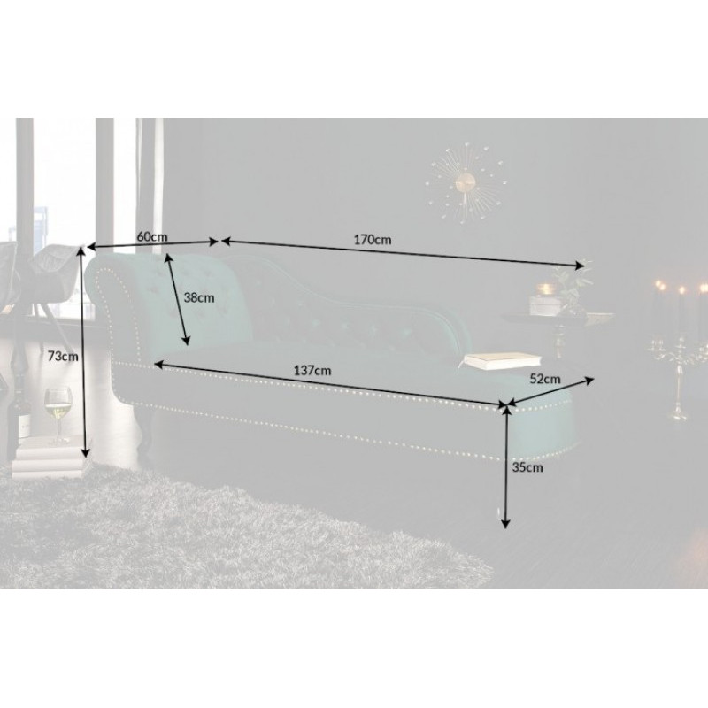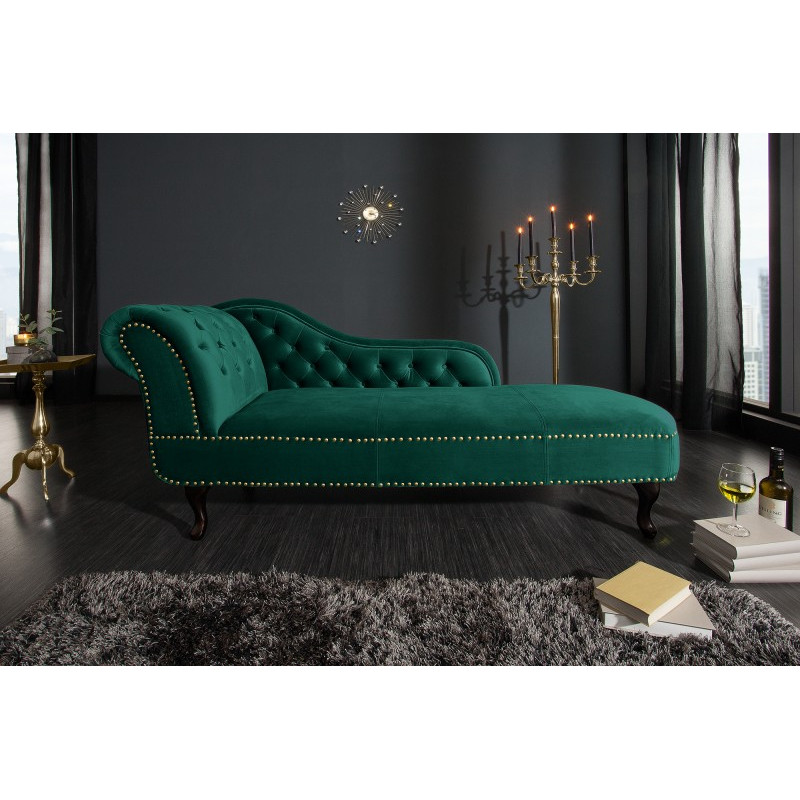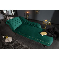 Importiert aus Deutschland, hergestellt für den westlichen Markt, Maße: B170xT60xH73cm, Sitzhöhe 35cm, Sitztiefe 52cm, Sitzbreite 137cm, Rückenlehnenhöhe: 18-40 cm, Armlehnenhöhe: 38cm, Bezugsmaterial weicher Samtstoff 100% Polyester in smaragdgrünem Samt, vollgepolstert - auch für den Raum geeignet, stabiles Gestell aus FSC-zertifiziertem Eichenholz, Holzbeine, hochwertige Schaumstoff-Polyäther-Polsterung, Stahlfederkern + Sitzkissen bequem atmungsaktiv pur 20cm dick, Schaumstoffpolsterung Dichte 50kg/m3, schön abgerundete Armlehnen sorgen für eine gemütliche Atmosphäre beim Relaxen, exklusives Wohnkonzept im Chesterfield-Stil, charismatische Luxus-Chaise-Lounge im klassisch englischen und doch modernen zeitlosen Stil, einfache Pflege mit Anleitung, Hersteller Invicta Interior.