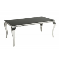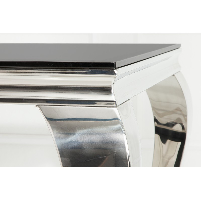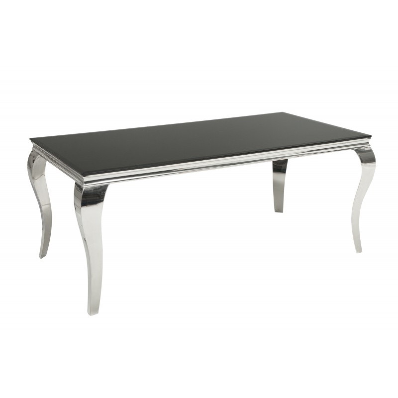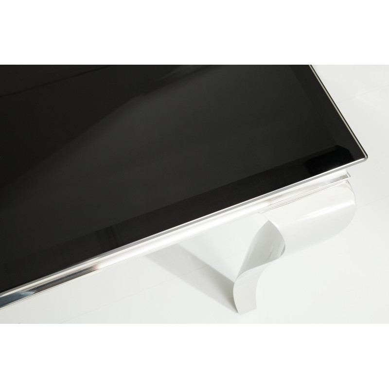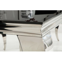 Importiert aus Deutschland, hergestellt für den westlichen Markt, Maße: B180xT90xH75cm, Material langlebiges Opalglas in schwarz, Gestell aus poliertem Edelstahl, ausdrucksstarker und sinnlicher Tisch in zeitlosem, trendigem Stil, pflegeleicht, wird zerlegt geliefert, Hersteller Invicta Interior.