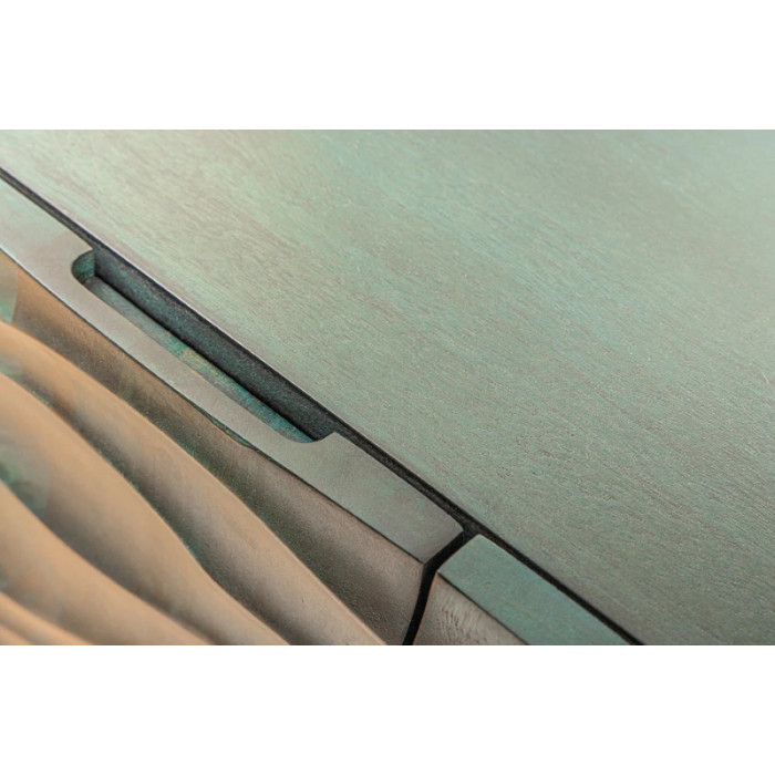 Masivní komoda z mangového dřeva s detailním 3D designem v tyrkysové barvě a unikátním vzhledem s rozměry 160 x 38 x 75 cm