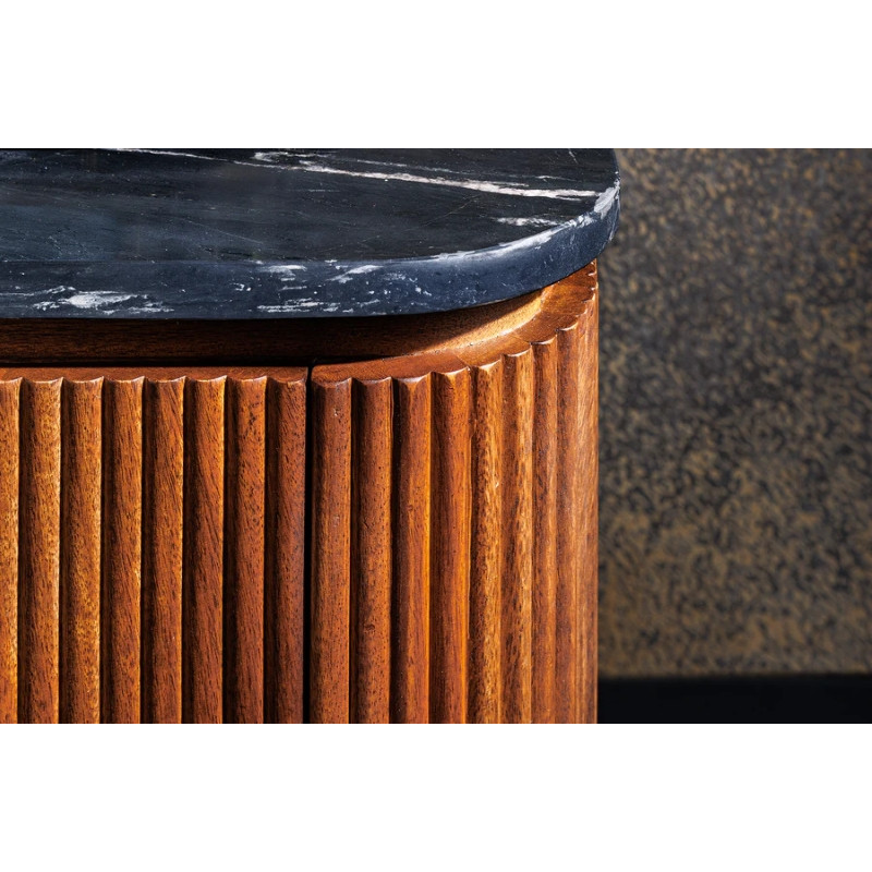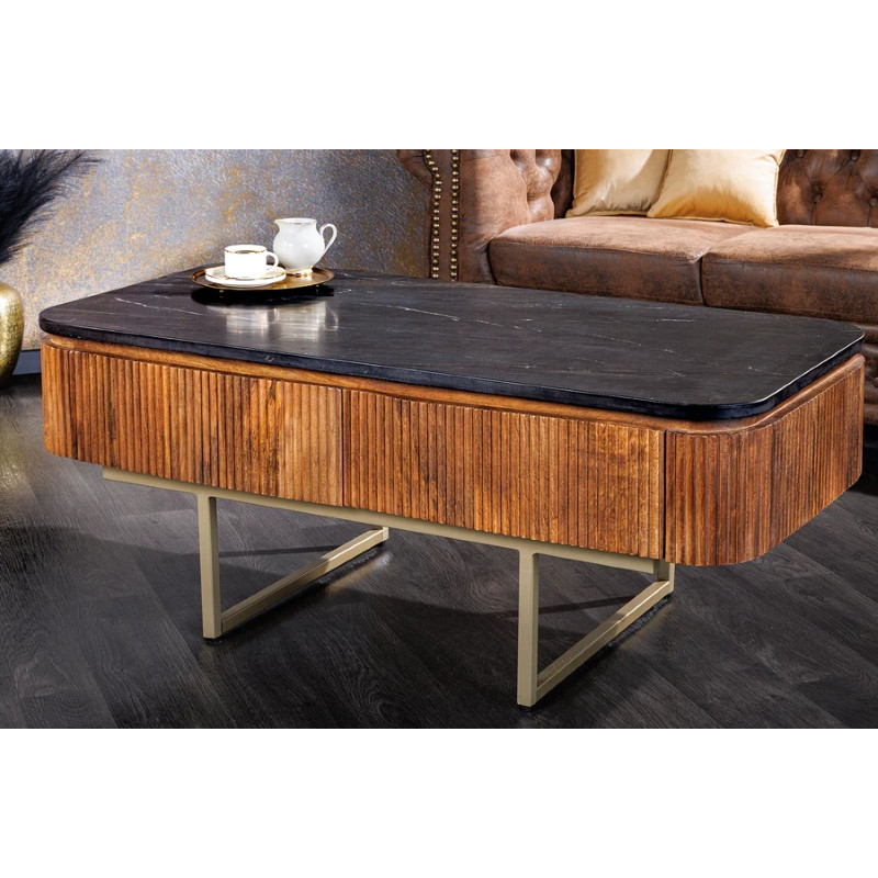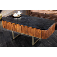 Konferenztisch GATSBY 110 cm, Retro-Stil, Mangoholz, Goldmarmorplatte, schwarz