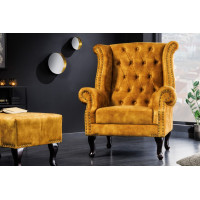 INGLESE Chesterfield Ohrensessel Antique Senfgelb