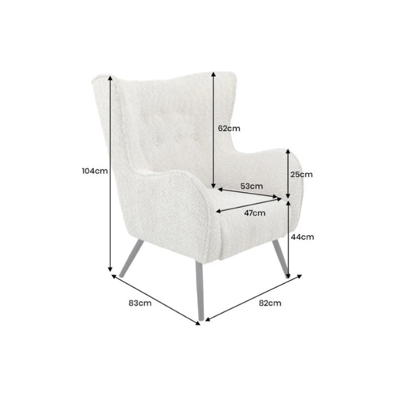 Abmessungen des Sessels: Höhe 104 cm, Breite 82 cm, Tiefe 83 cm