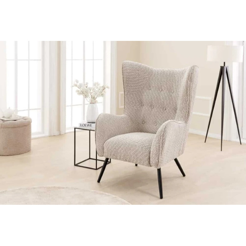 Sessel mit Flügeln AMSTERDAM bouclé grau-beige