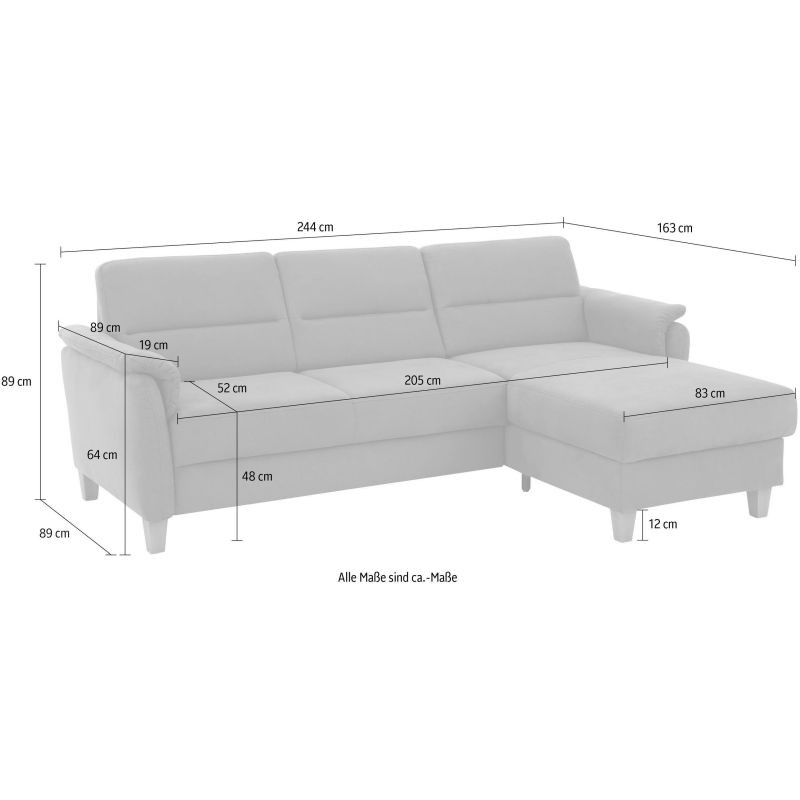 - Breite des vorderen Teils der Recamiere: 83 cm