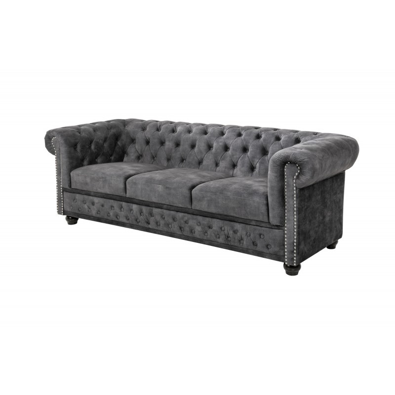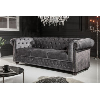 CHESTERFIELD Dreisitzer-Sofa Samt grau