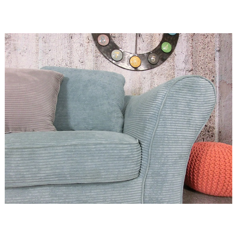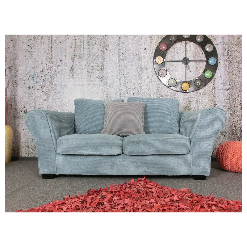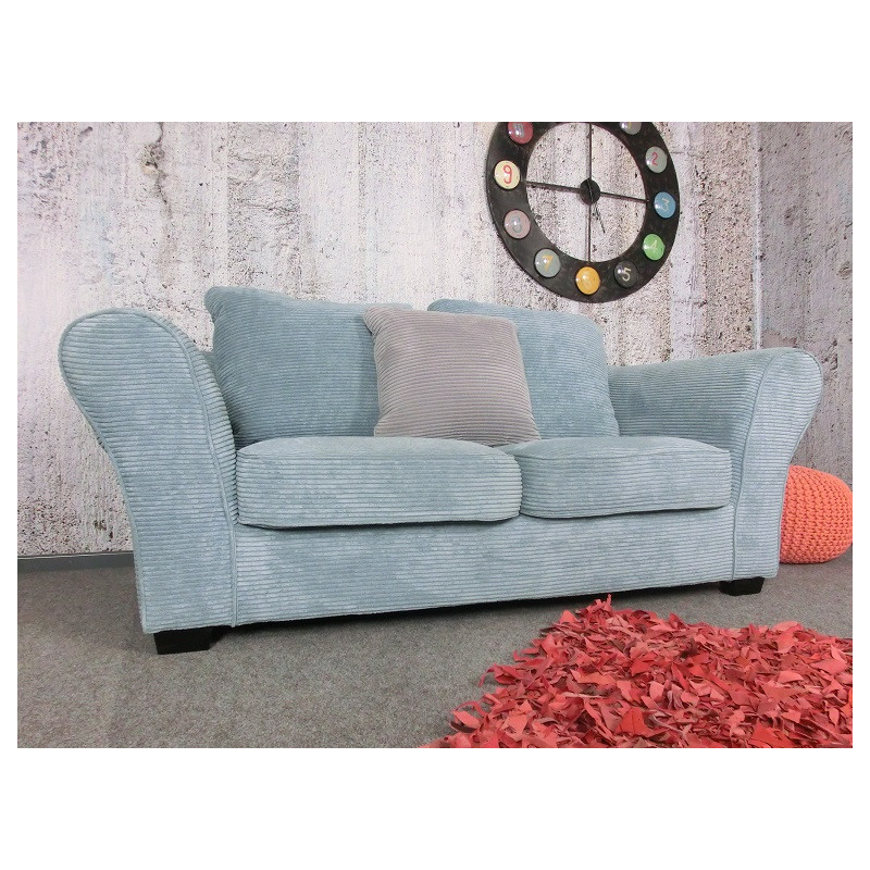 Importiert aus Deutschland, hergestellt für den westlichen Markt, Maße: B210xT100xH95cm, Sitzhöhe 48cm, Sitztiefe 55cm, Sitzbreite 138cm, Rückenlehnenhöhe 48cm, Armlehnenhöhe 75cm, Bezugsmaterial weiches, sehr angenehmes Cordgewebe 64% Polyester und 36% Baumwolle in türkis - vollgepolstert, stabiler Holzrahmen und Beine, Stahlfederkern Federkern Komfort + Sitzkomfort atmungsaktiv pur, elegant abgerundete Armlehnen, sehr bequemes großes Sofa, 3x großes Kissen, genießen Sie Komfort und wohlverdiente Ruhe, pflegeleicht, Hersteller Gutmann Factory.